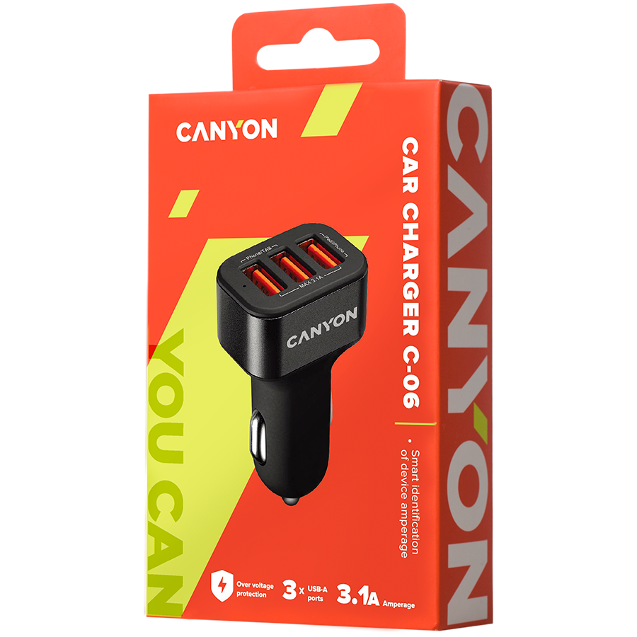 CANYON car charger C-06 3.1A/3USB-A Black