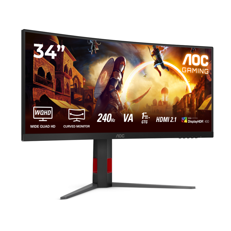 MONITOR AOC CU34G4Z 34" Curved Fast VA, WQHD 3440×1440, 240Hz, 1500R, 1ms, DisplayHDR 400, Adaptive Sync, 2x HDMI 2.1, 1x DP 1.4, USB hub, Ergonomic
