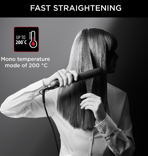 Rowenta-Karl Lagerfedl Easyliss SF161LFO pegla za kosu.Bezbrižno oblikovanje uz mono temperaturni način za brzu izvedbu i jednostavna kontrola.Keramička turmalinska prevlaka za uglađenu i sjajnu kosu.Sistem plutajućih ploča.