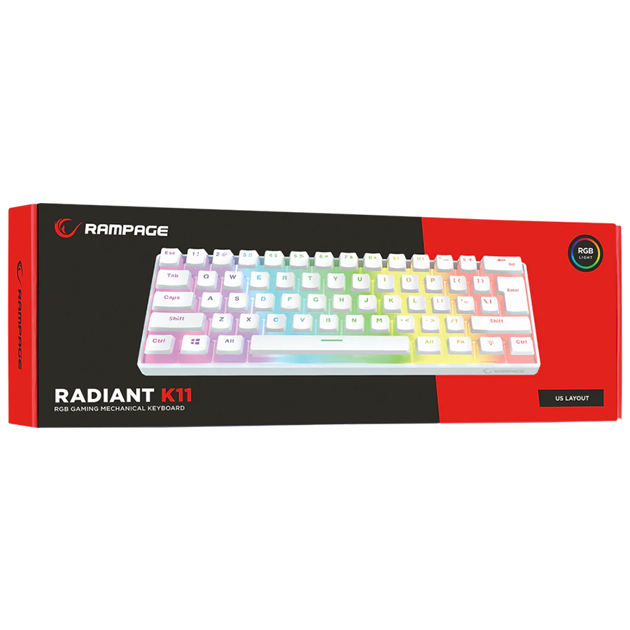Tastatura gaming RAMPAGE RADIANT K11 white, red switch, Type-C, RGB, US Layout, pudding keycaps