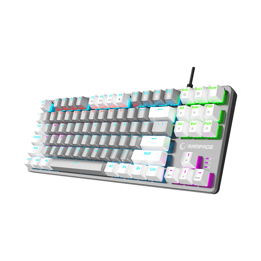 Tastatura gaming RAMPAGE Snug K14 Gray/White Red Switch Mechanical Gaming Keyboard ENGLISH Layout English Rainbow TKL, 41855